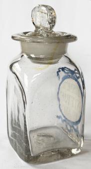 Apotheken-Vierkant-Weithalsglas mit Schleifen-Dekor in Email, Ende 18. Jh.
